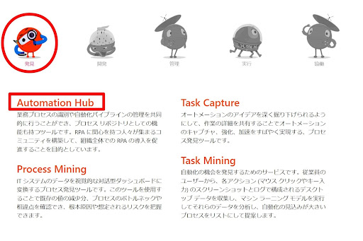ここでは仮に「発見」の項目で表示される「Automation Hub」を選択します。