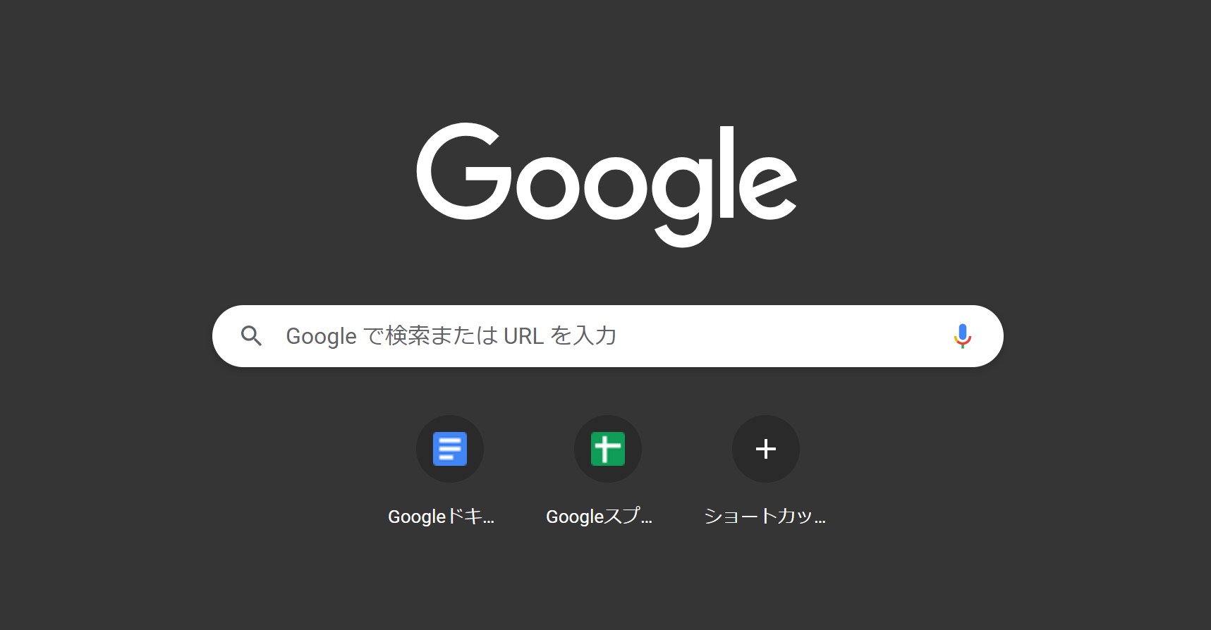Google Chromeのトップページを開くと、画面中央に検索バー、そしてその下に+マークの空間が表示されます。