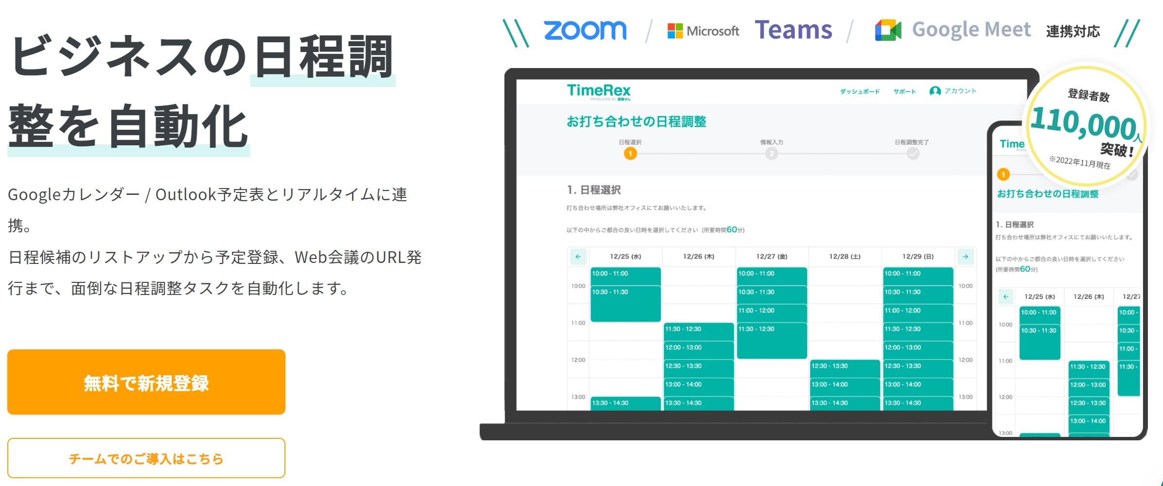 TimeRexは、ミクステンド株式会社が提供する日程調整の自動化ツールです。